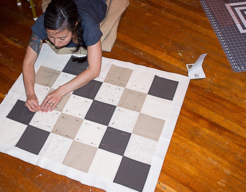 One of the best things that has happened in the process so far was my discovery of a a small shop. I was searching for a specific thread and after calling several shops in Seattle, I was finally able to locate it at "Okan Arts," a small independently owned shop that specializes in Japanese fabrics run by a wonderful woman named Patricia. She had me bring my quilt top project to see what I was working on and ended up giving me a ton of tips and pointers on it. Turns out I made several mistakes and was able to fix them all after visiting her. Her passion for quilting was evident and truly inspiring. I strongly recommend her shop if you're ever in the market for fine fabrics, threads or quilting classes.